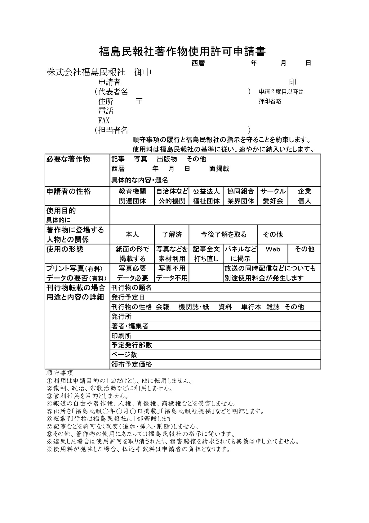⑥転載刊行物は福島民報社に1部寄贈すること。